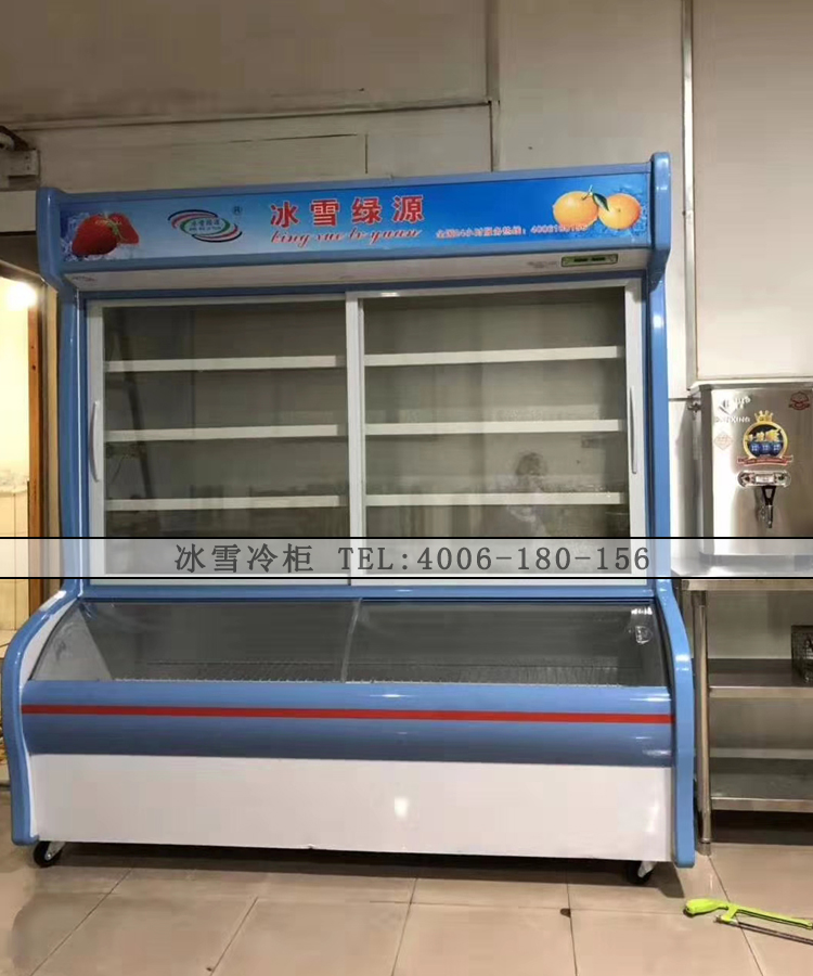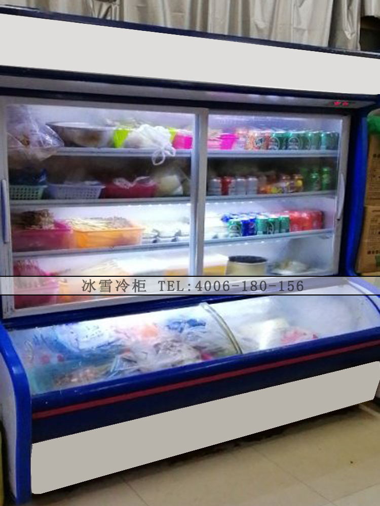 上下分开独立控温,适用范围广,上面保鲜,适合保鲜蔬菜、水果等;下面微冻:适合肉类冷藏展示;